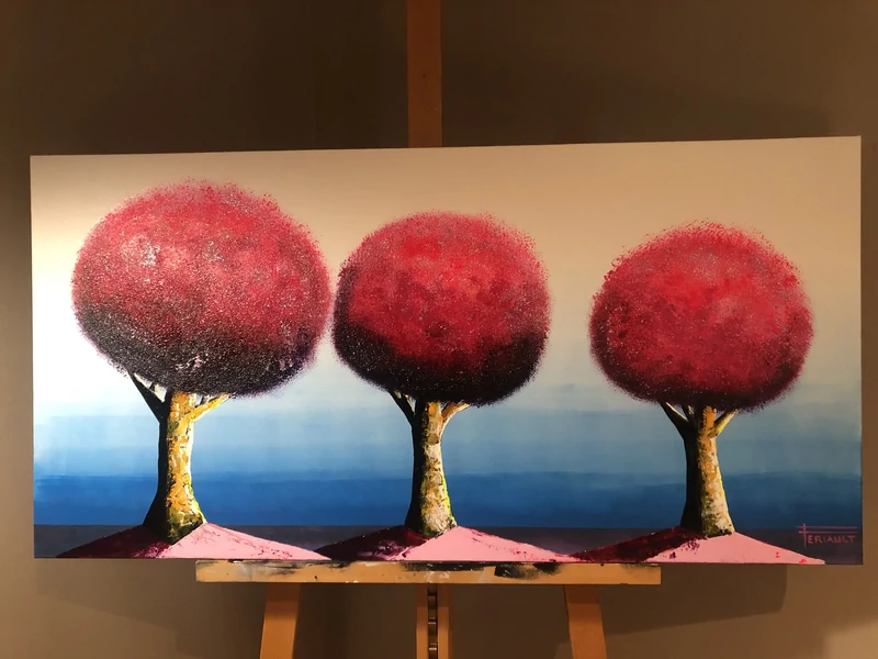 "LES ARTBRES PINK" - 100 x 50 cm - Châssis coton - Toile 3D - 2023 - Acrylique